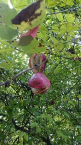 鳥に突かれたのか?白い果肉が落ちてしまっているものもある。