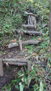 1時間あまりで迂回路の階段づくりと草刈り終了。