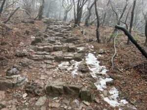 大浪池 山頂近く 先日の雪が残っている。