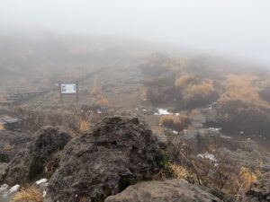 残念ながら霧で何も見えない。