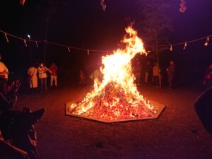 霧島神宮での本宮祭の後、日没に高千穂河原にある古宮址で御神火で祈願札や絵馬を
