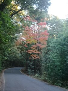 もみじトンネルの紅葉は うっすら色づき始め